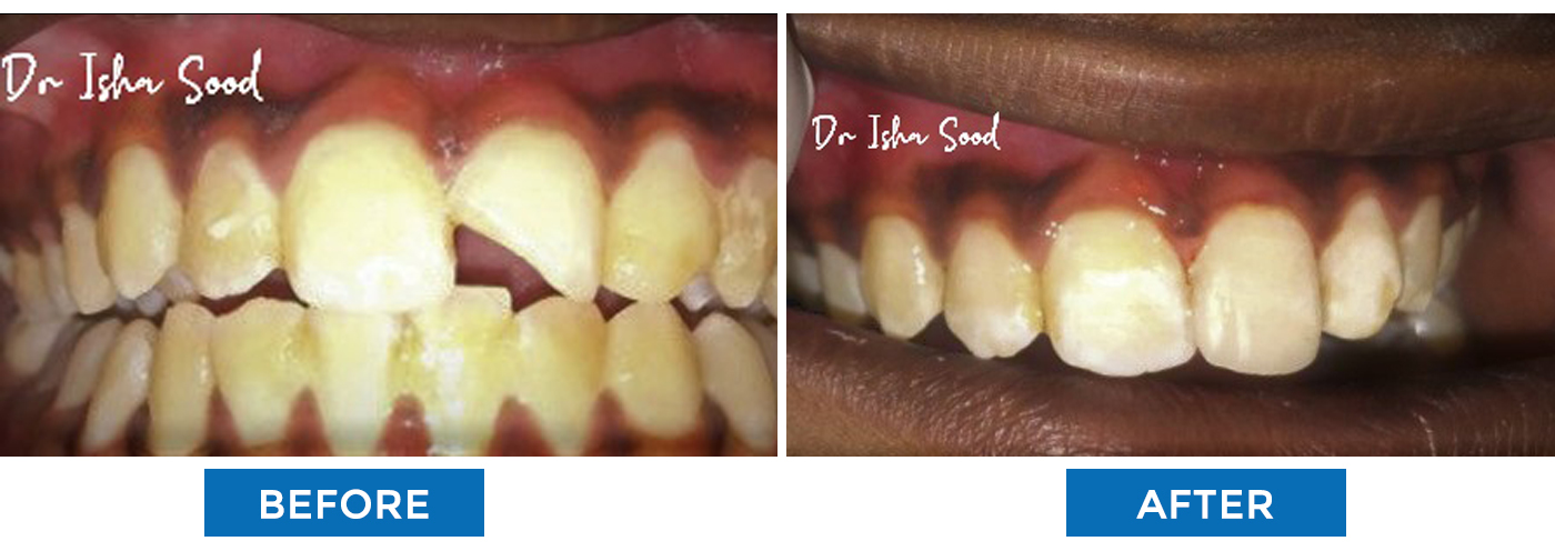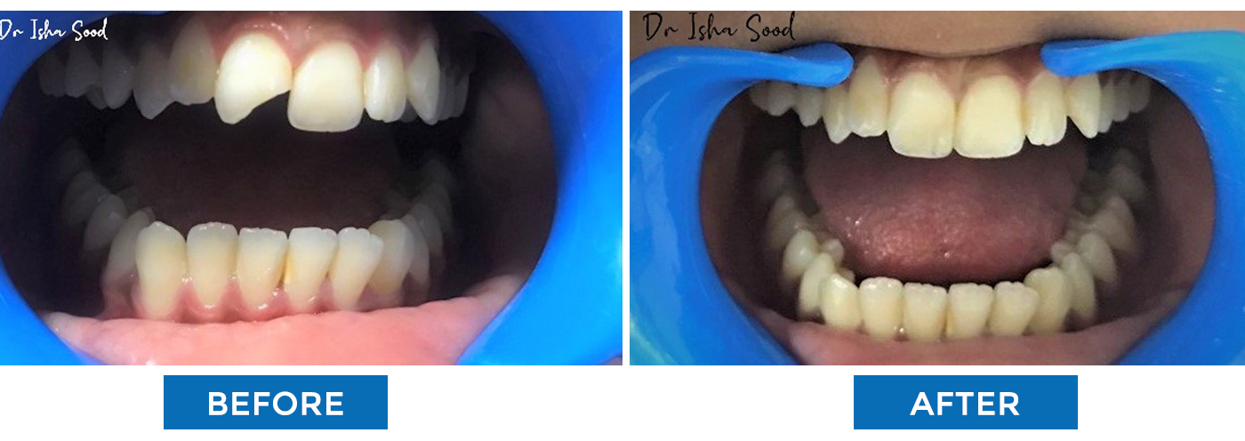Broken Tooth Repaired with Tooth Coloured Filling